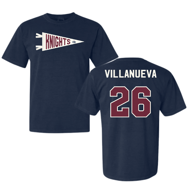 Fairleigh Dickinson University-Metropolitan Campus Soccer Navy Pennant Comfort Colors Tee - #26 Emily Villanueva