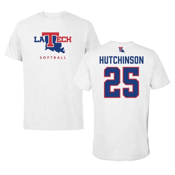 Louisiana Tech University Softball White Tee - #25 Emma Hutchinson