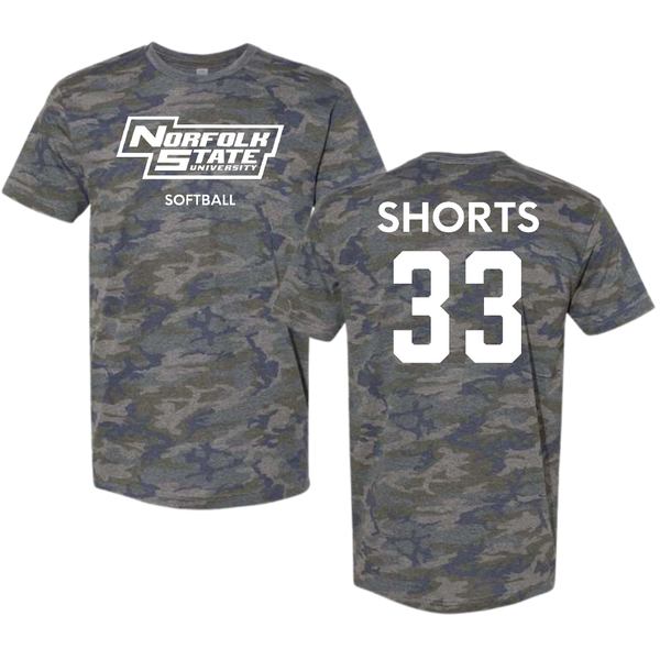 Norfolk State University Softball Vintage Camo Tee - #33 Emory Shorts