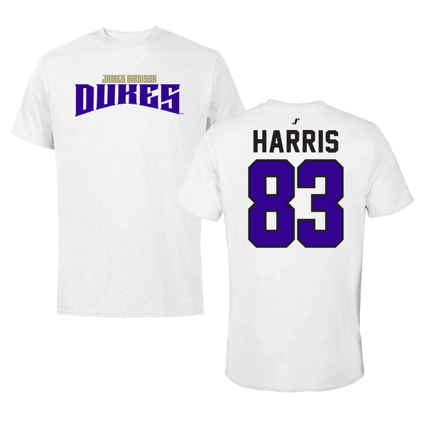 James Madison University Football White Tee - #83 Erick Harris