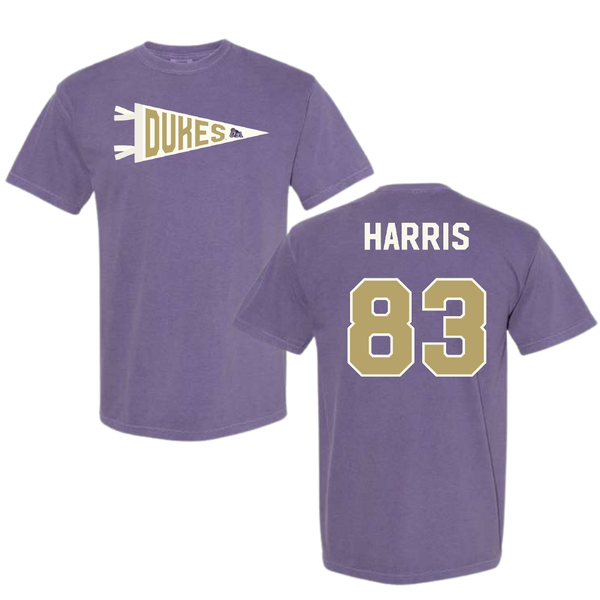 James Madison University Football Purple Pennant Comfort Colors Tee - #83 Erick Harris