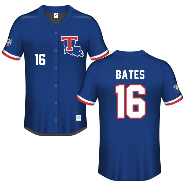 Louisiana Tech University Blue Button-Down Jersey - #16 Ethan Bates