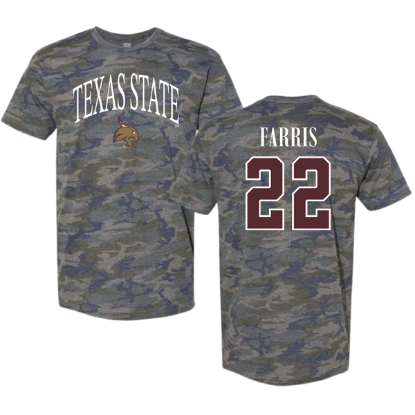 Texas State University Baseball Vintage Camo Tee - #22 Ethan Farris