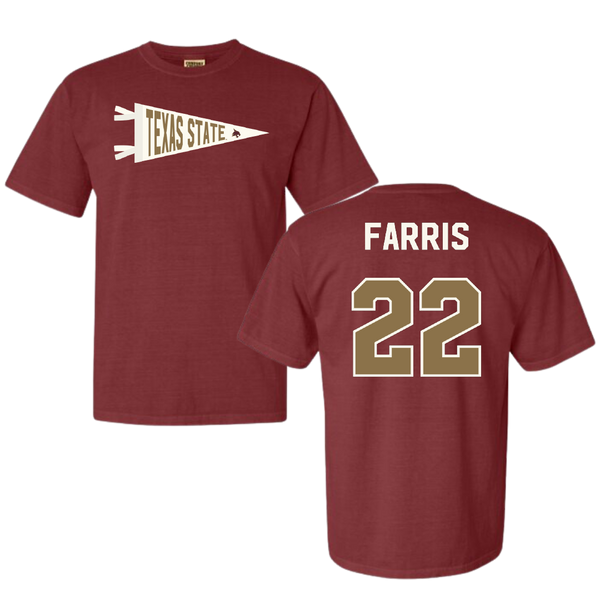 Texas State University Baseball Maroon Pennant Comfort Colors Tee - #22 Ethan Farris