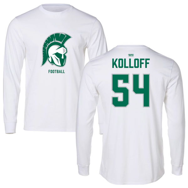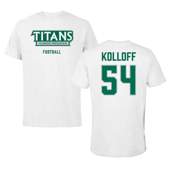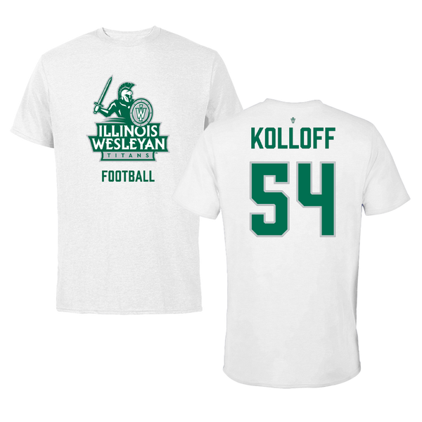Illinois Wesleyan University Football White Tee - #54 Ethan Kolloff