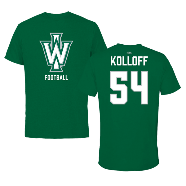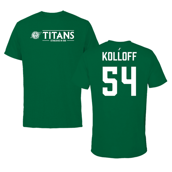 Illinois Wesleyan University Football Green Tee - #54 Ethan Kolloff