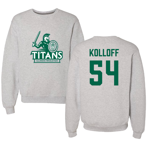 Illinois Wesleyan University Football Gray Titans Crewneck - #54 Ethan Kolloff