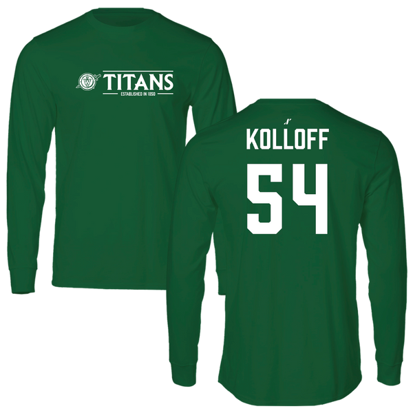 Illinois Wesleyan University Football Green General Performance Long Sleeve - #54 Ethan Kolloff