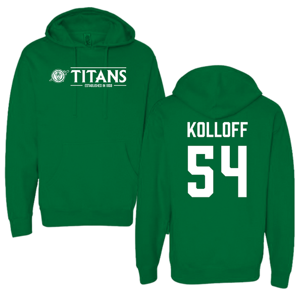 Illinois Wesleyan University Football Green General Hoodie - #54 Ethan Kolloff