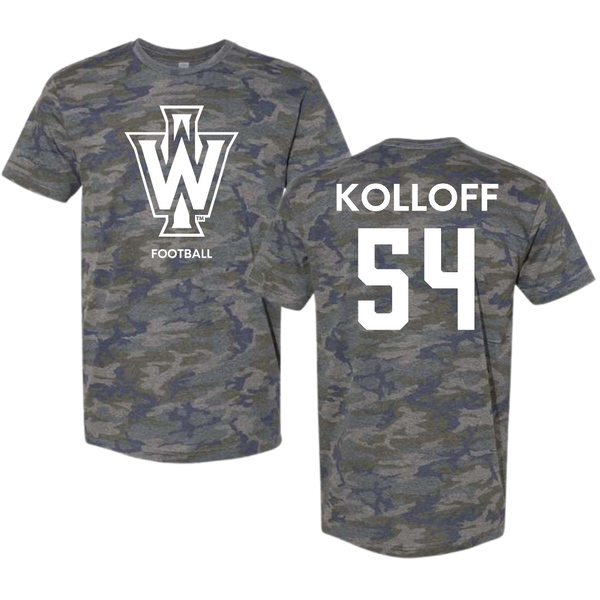Illinois Wesleyan University Football Vintage Camo Tee - #54 Ethan Kolloff