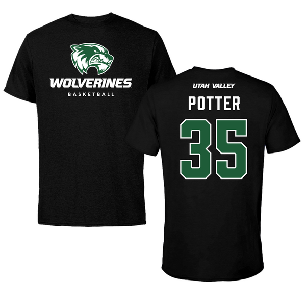 Utah Valley University Basketball Black Wolverines Tee - #35 Ethan Potter
