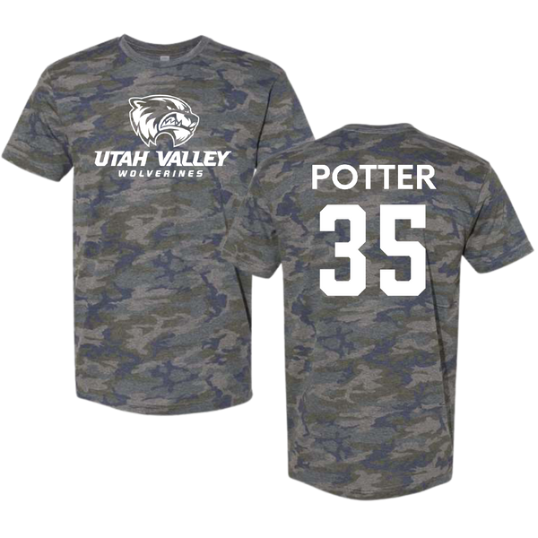 Utah Valley University Basketball (M) Vintage Camo Tee - #35 Ethan Potter