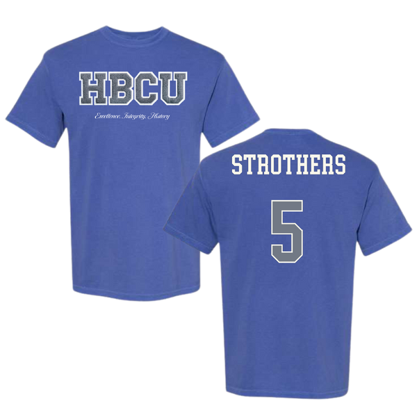 Hampton University Basketball (M) Blue HBCU Varsity Comfort Colors Tee - #5 Etienne Strothers
