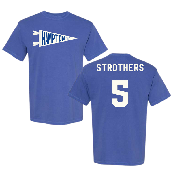 Hampton University Basketball Blue Pennant Comfort Colors Tee - #5 Etienne Strothers