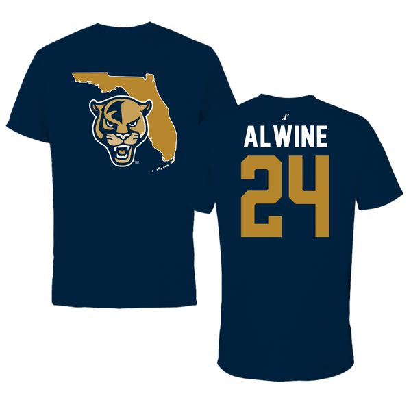 Florida International University Baseball Navy State Tee - #24 Evan Alwine