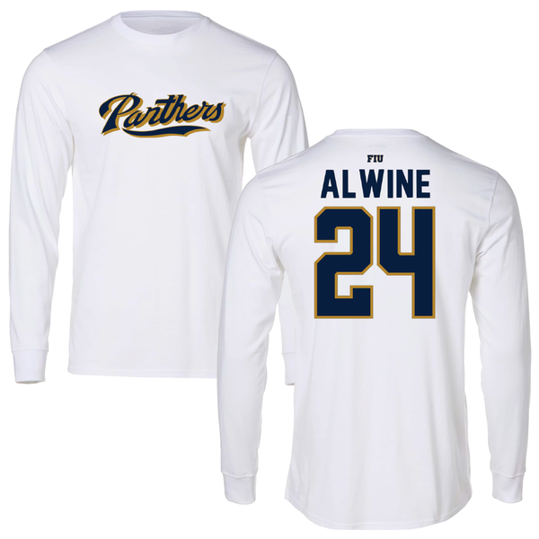 Florida International University Baseball White Panthers Long Sleeve - #24 Evan Alwine