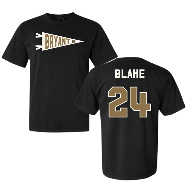 Bryant University Baseball Black Pennant Comfort Colors Tee - #24 Evan Blake