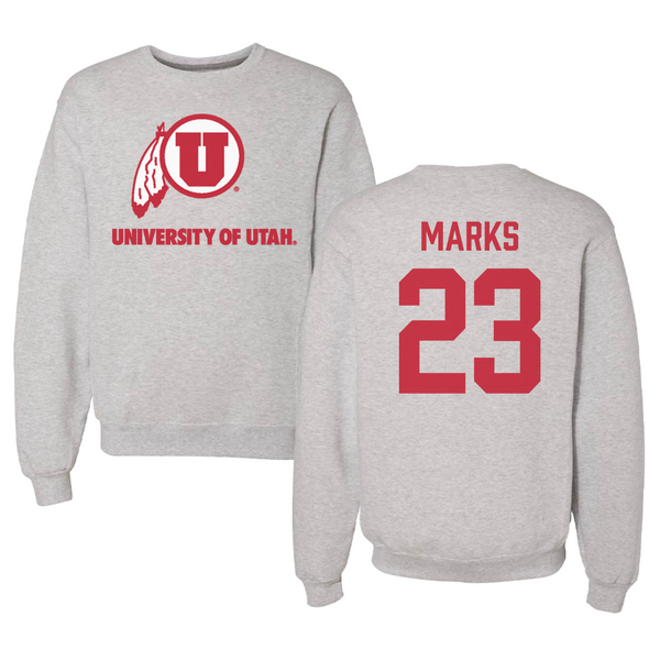 University of Utah Football Gray Crewneck - #23 Faybian Marks