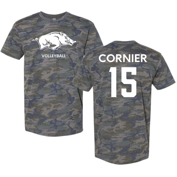 University of Arkansas Volleyball (W) Vintage Camo Tee - #15 Gabriela Cornier