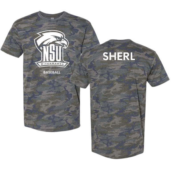 Northeastern State University Baseball Vintage Camo Tee - Gannon Sherl