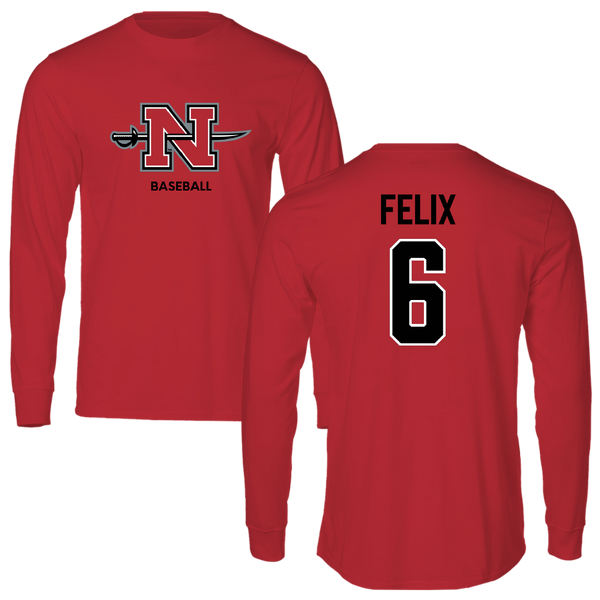 Nicholls State University Baseball Red Mascot Long Sleeve - #6 Garrett Felix