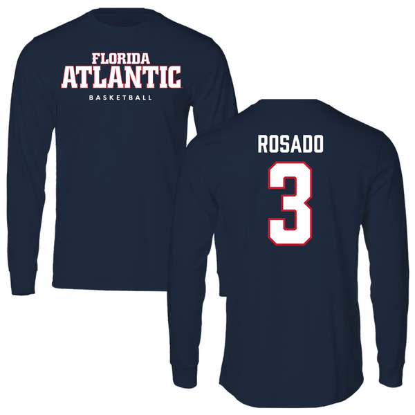 Florida Atlantic University Basketball Navy Block Long Sleeve - #3 Giancarlo Rosado
