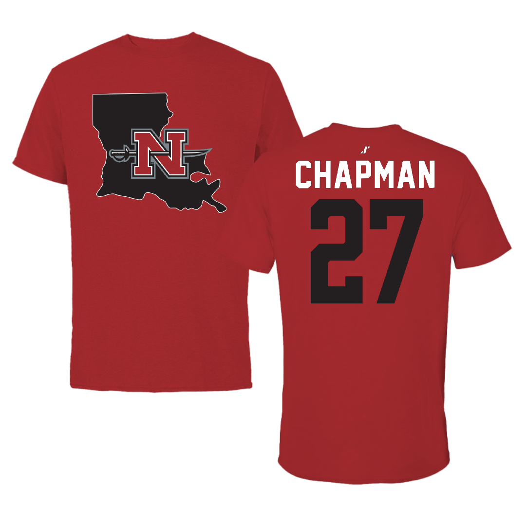 Nicholls State University Football Canvas Red State Tee - #27 Gil Chapman