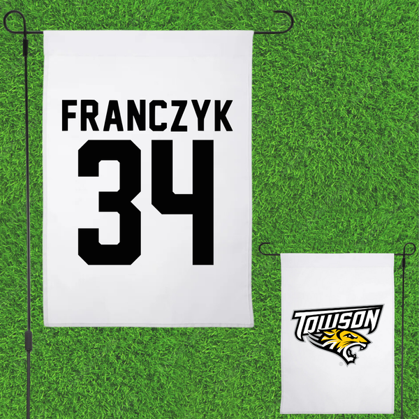 Towson University Softball White Garden Flag - #34 Grace Franczyk