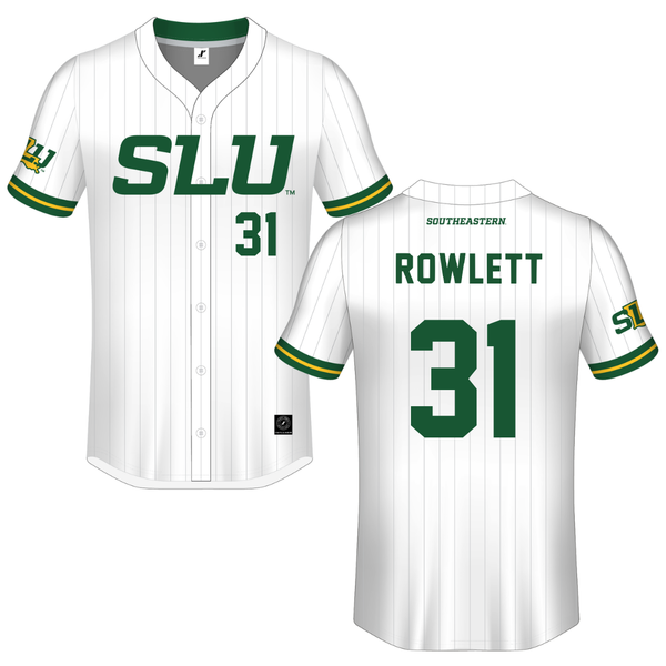 Southeastern Louisiana University White Pinstripe Button-Down Jersey - #31 Grady Rowlett