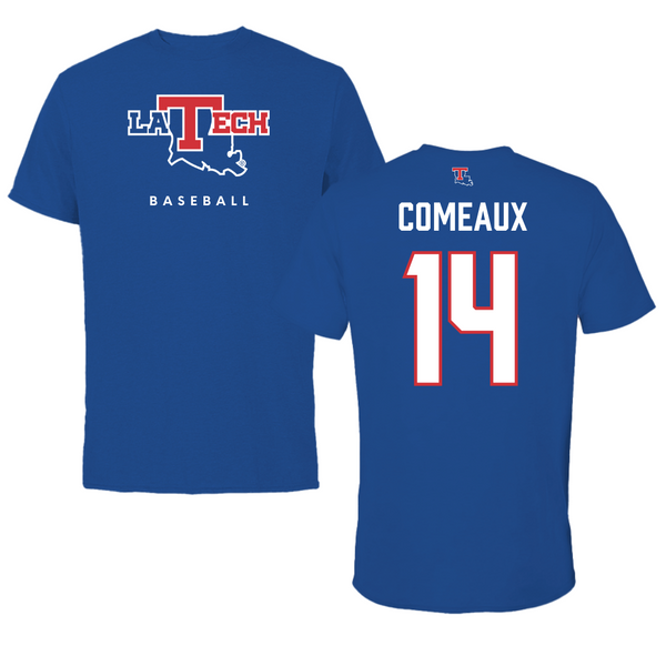 Louisiana Tech University Baseball True Royal Tee - #14 Grant Comeaux