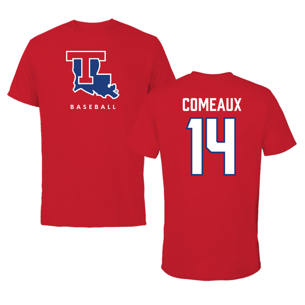 Louisiana Tech University Baseball Red Tee - #14 Grant Comeaux