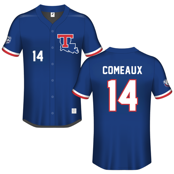 Louisiana Tech University Blue Button-Down Jersey - #14 Grant Comeaux