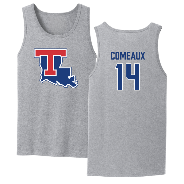 Louisiana Tech University Baseball Sport Gray Tank Top - #14 Grant Comeaux