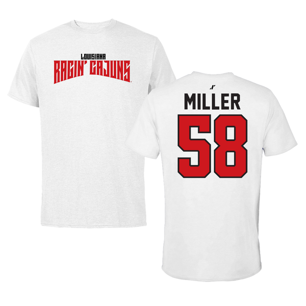 University of Louisiana at Lafayette Football White Classic Tee - #58 Grant Miller