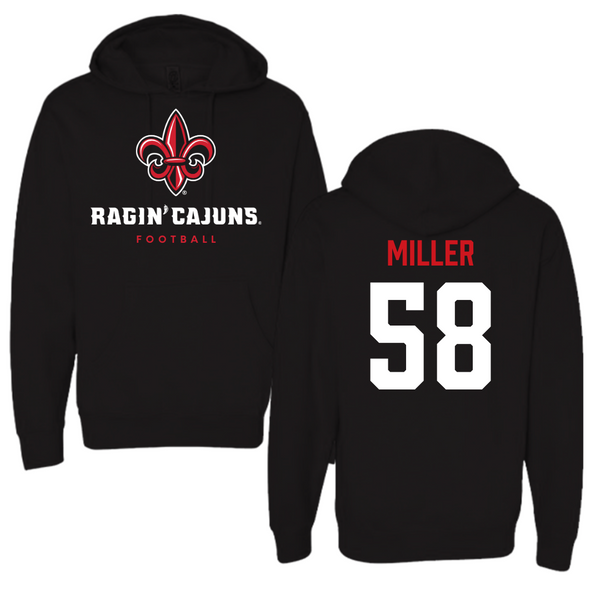 University of Louisiana at Lafayette Football Black Hoodie - #58 Grant Miller