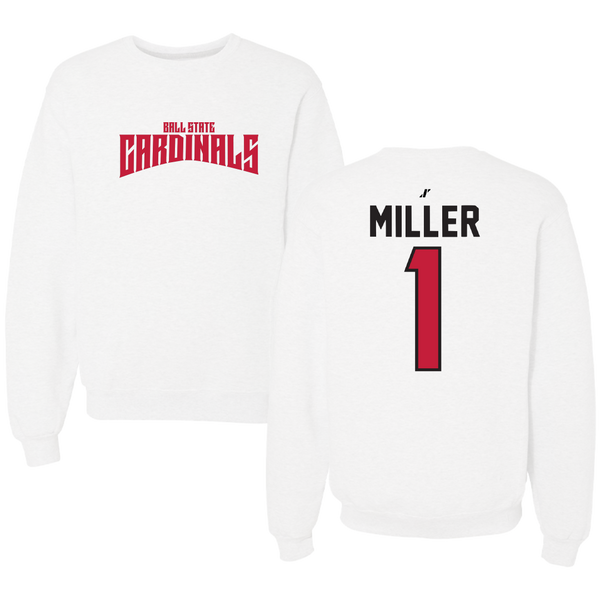 Ball State University Baseball White Classic Crewneck - #1 Grant Miller