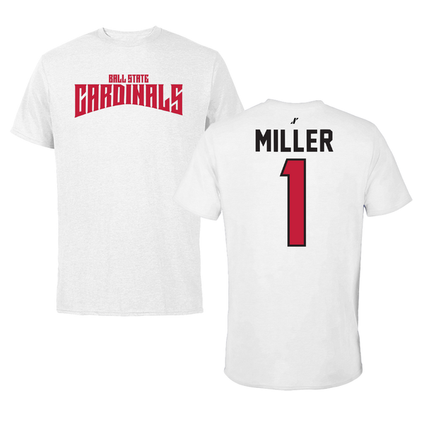 Ball State University Baseball White Classic Tee - #1 Grant Miller