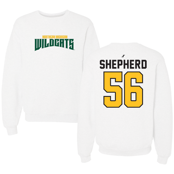 Northern Michigan University Football White Classic Crewneck - #56 Graycen Shepherd