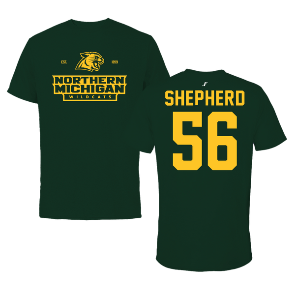 Northern Michigan University Football Forest Green Dominate Tee - #56 Graycen Shepherd