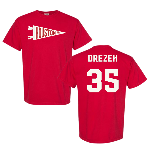 University of Houston Baseball Red Pennant Comfort Colors Tee - #35 Graysen Drezek