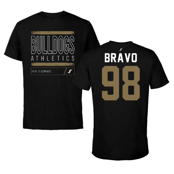 Bryant University Football Black Dominate Tee - #98 Gustavo Bravo