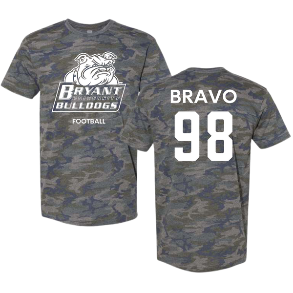 Bryant University Football Vintage Camo Tee - #98 Gustavo Bravo