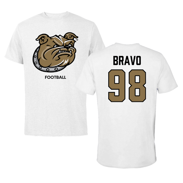 Bryant University Football White Classic Tee - #98 Gustavo Bravo