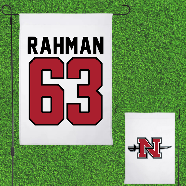 Nicholls State University Football White Garden Flag - #63 Hamza Rahman