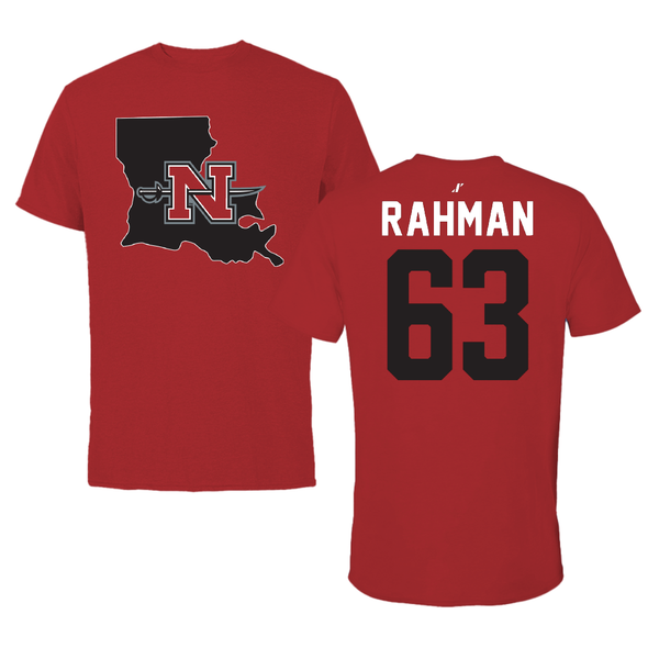 Nicholls State University Football Red General Tee - #63 Hamza Rahman