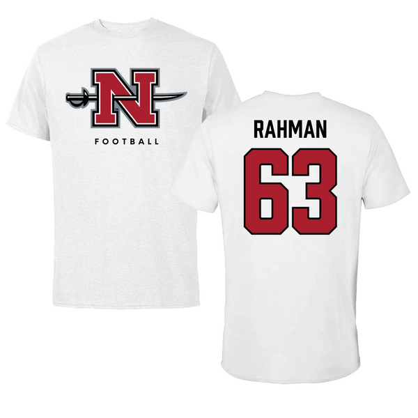 Nicholls State University Football White Tee - #63 Hamza Rahman