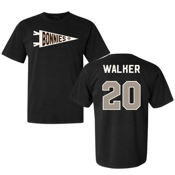 St. Bonaventure University Soccer Black Pennant Comfort Colors Tee - #20 Hannah Walker