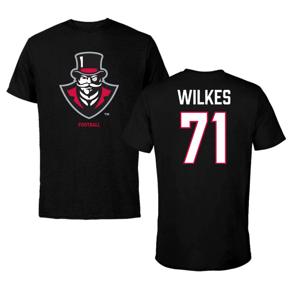Austin Peay State University Football Black Tee - #71 Harrison Wilkes