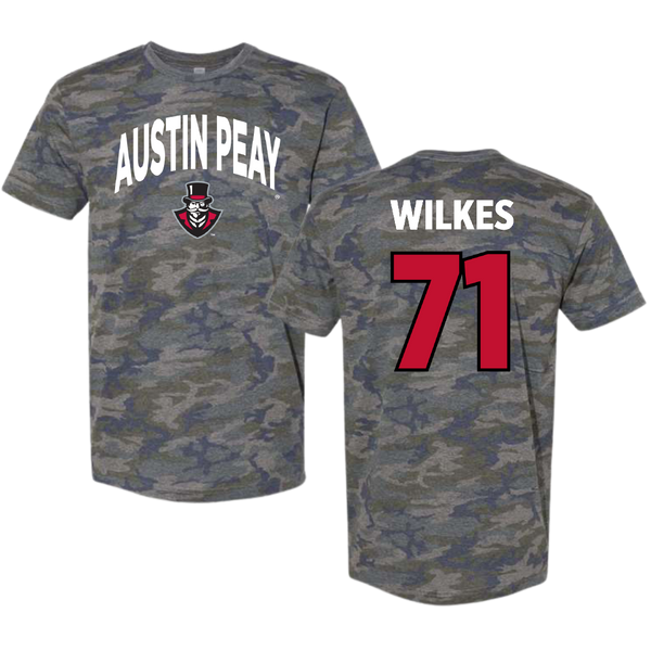 Austin Peay State University Football Vintage Camo Tee - #71 Harrison Wilkes