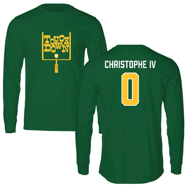 Southeastern Louisiana University Football Green Touchdown Long Sleeve - #0 Herman Christophe IV